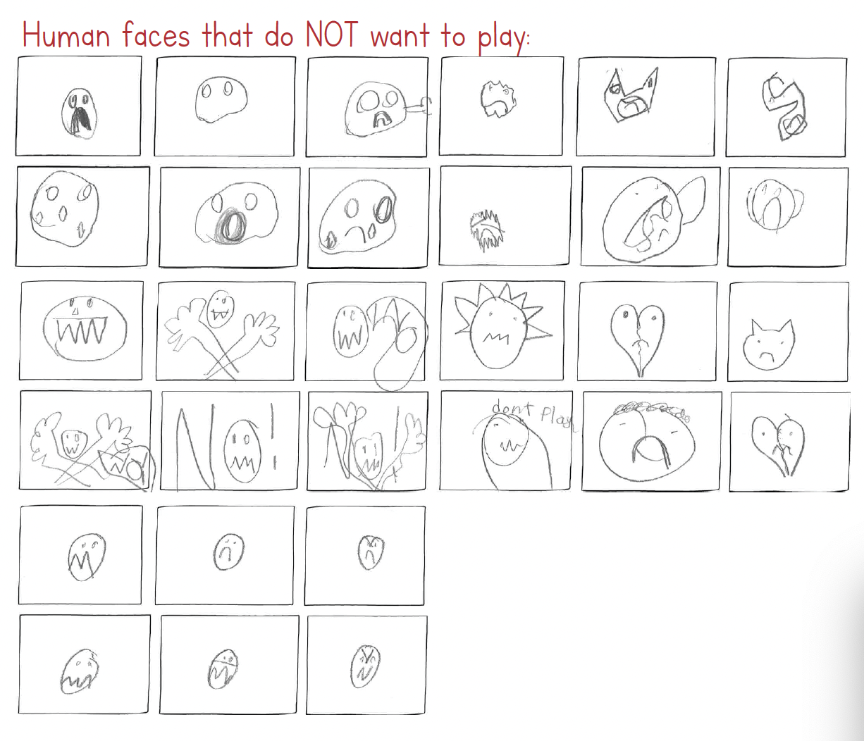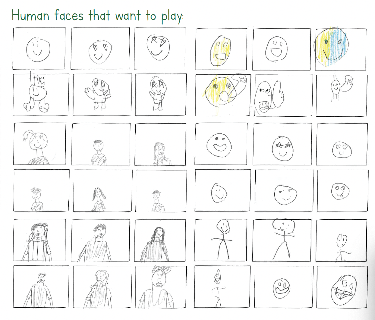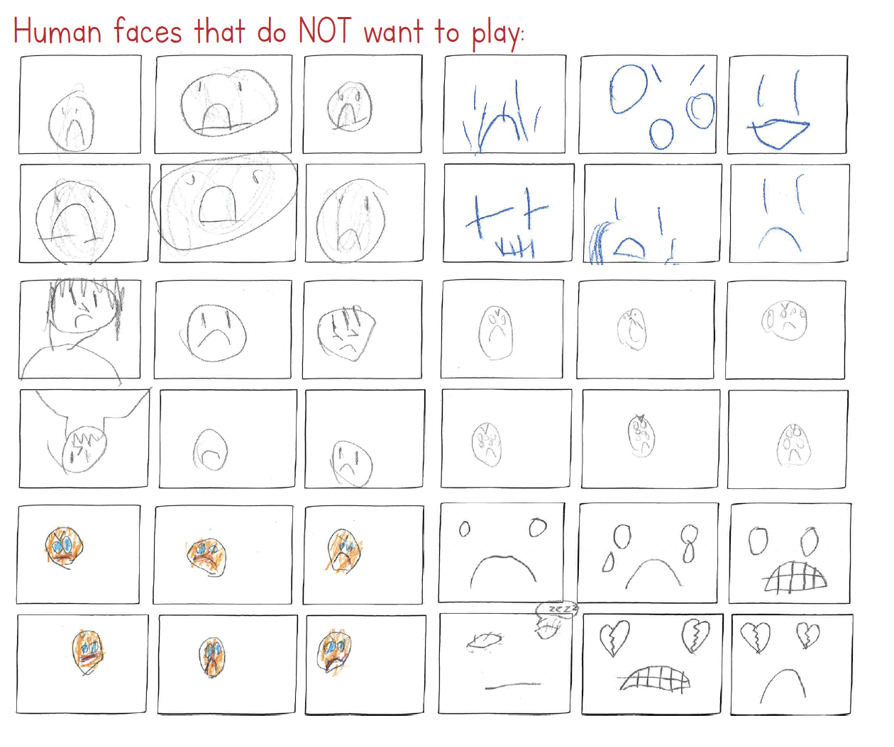 AI models rely on training data. These are examples drawn by 2nd grade students. Imagine a robot that is programmed to be your friend. This training data could be used to teach the robot when you want to play, and when you want to be left alone. How would a robot know if you wanted to play?