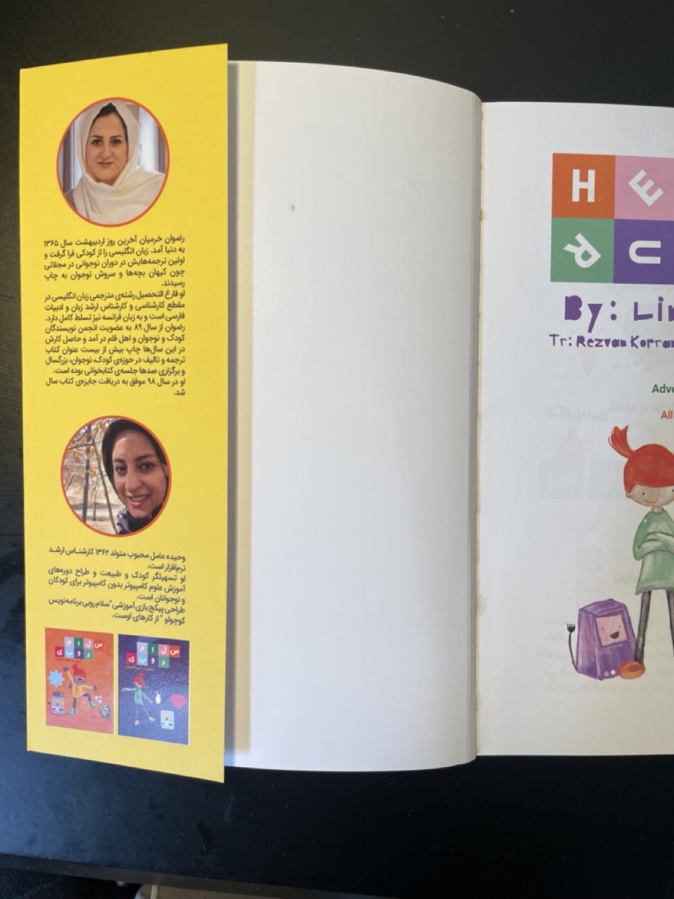 A few weeks ago, I received the Farsi edition of Hello Ruby. It marks the 37th official translation of the book. The dust jacket includes the two translators' names, pictures, and bios.