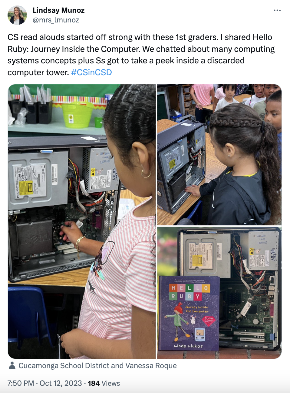 I love when educators make computers visible and allow children to use touch. Here Ms. Munoz and the second Ruby book.