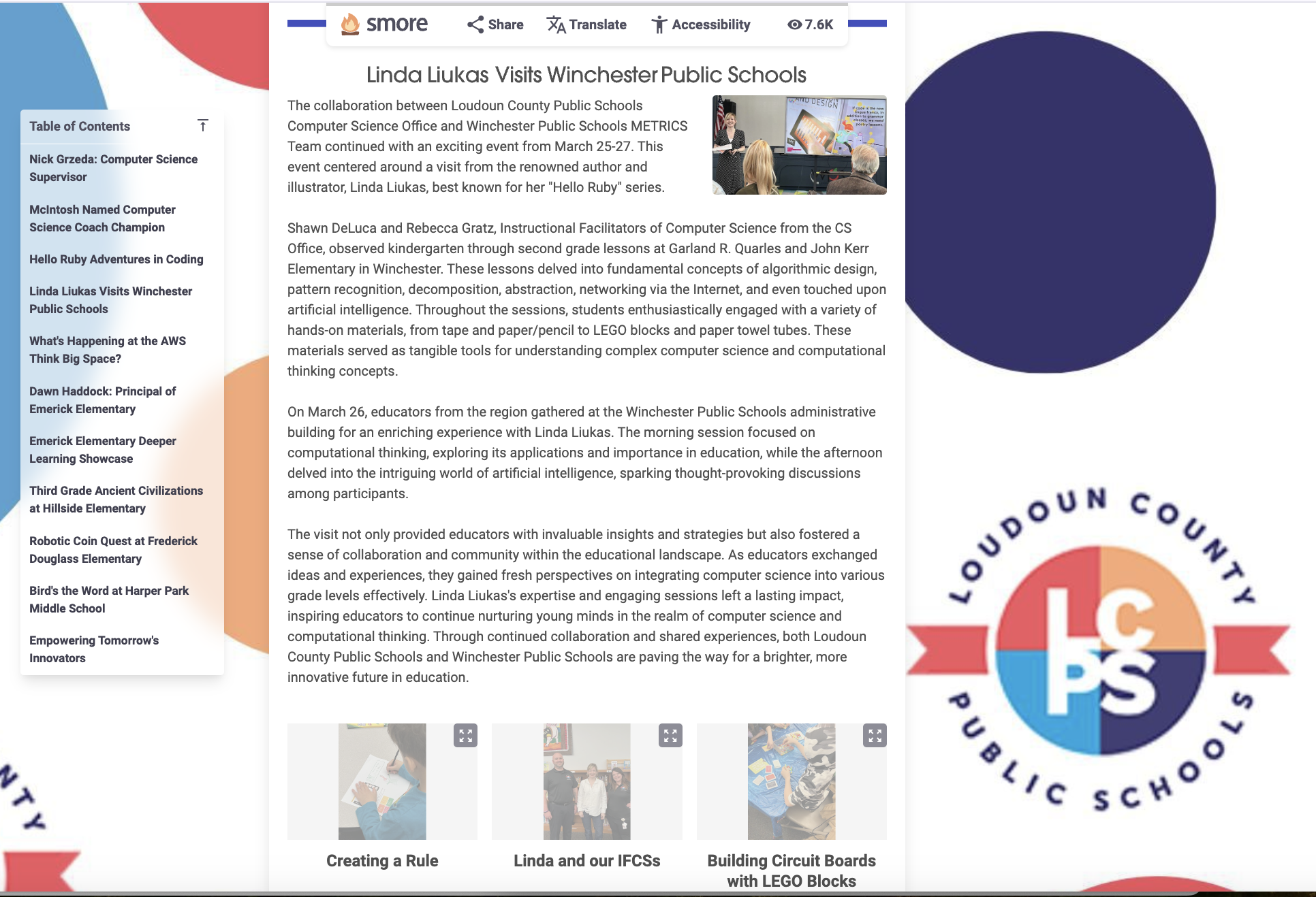 I was lucky to meet some excellent folks from Loudoun County Public Schools. They have a great newsletter, which I just got featured in. It is full of great ideas for educators.