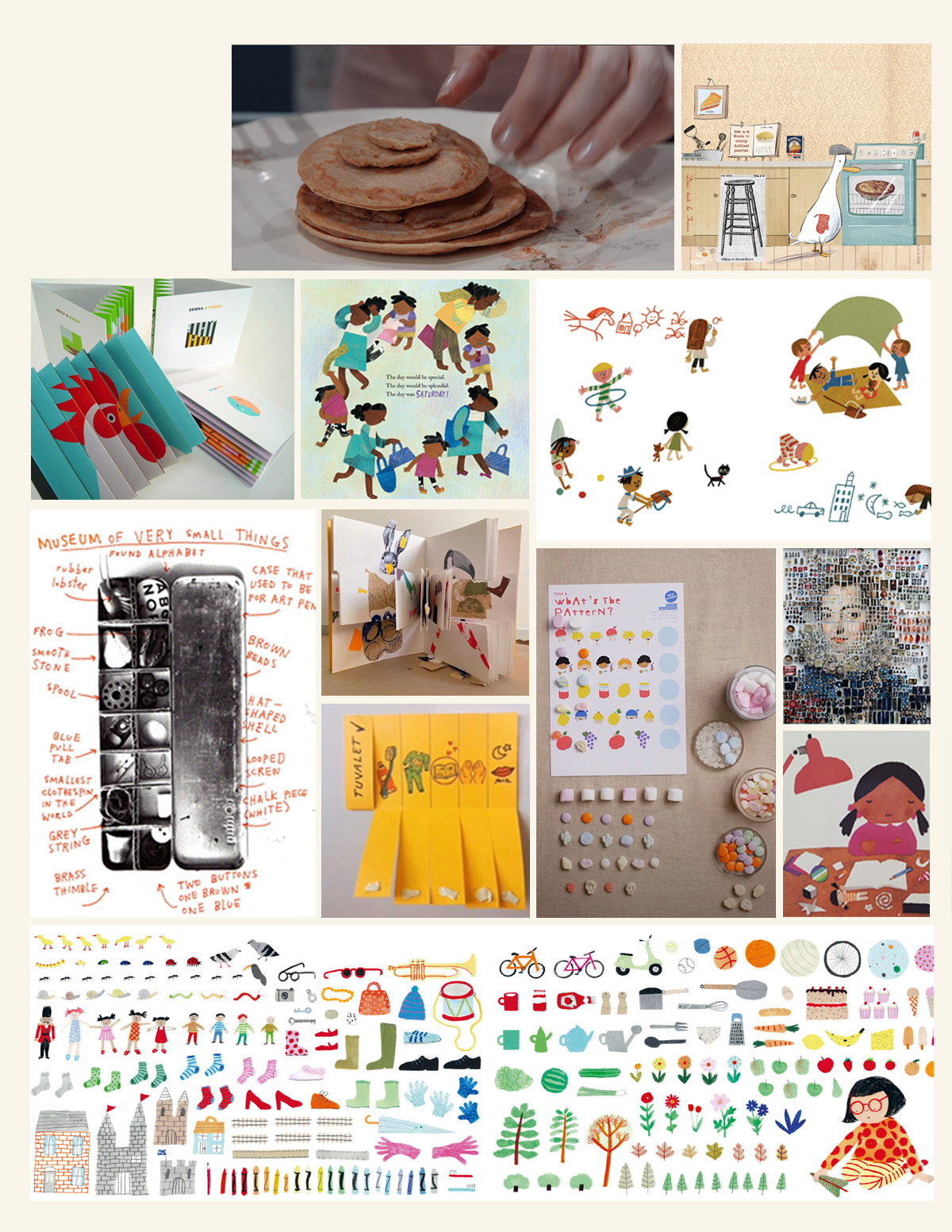 Moodboard from the left: Pancake sorting (me!), Gus Gordon ‘George wasn’t like most birds’, Katsumi Komagata, Saturday by Oge Mora, Another by Christian Robinson, Museum of Very Small Things, Atelier pour enfants - de l'atelier "Habille-moi, Montessorisaati, Metaphorical Portraits by Michael Mapes, What’s the pattern (me!), Taro Gomi, All Sorts by Pippa Goodhart